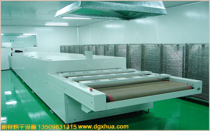 机台结构:进料段:1000mm(手动调节门+垂帘),烘干段:4000mm(分2段加热控制),冷却段:200mm(4排风扇), 出料段:800mm(手动调节门+垂帘)。